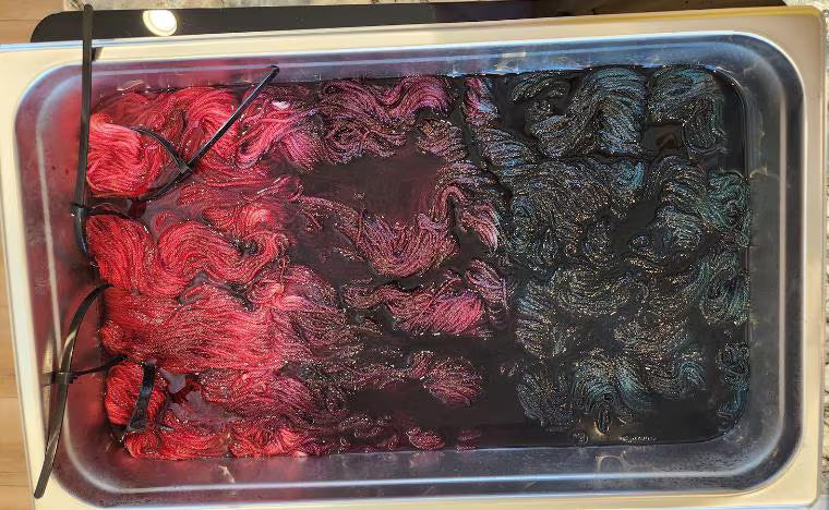 Once I found that community I became obsessed with all things fiber arts. Since I was a single mom, I was looking for ways to make money so I thought I’d try my hand at dyeing yarn. Having a little one, I started dyeing with kool aid. It was a lot of fun but I just wasn’t in the headspace to start a business, plus I wanted to get more saturated colors but didn’t want to have the hassle of acid dyes with a baby.