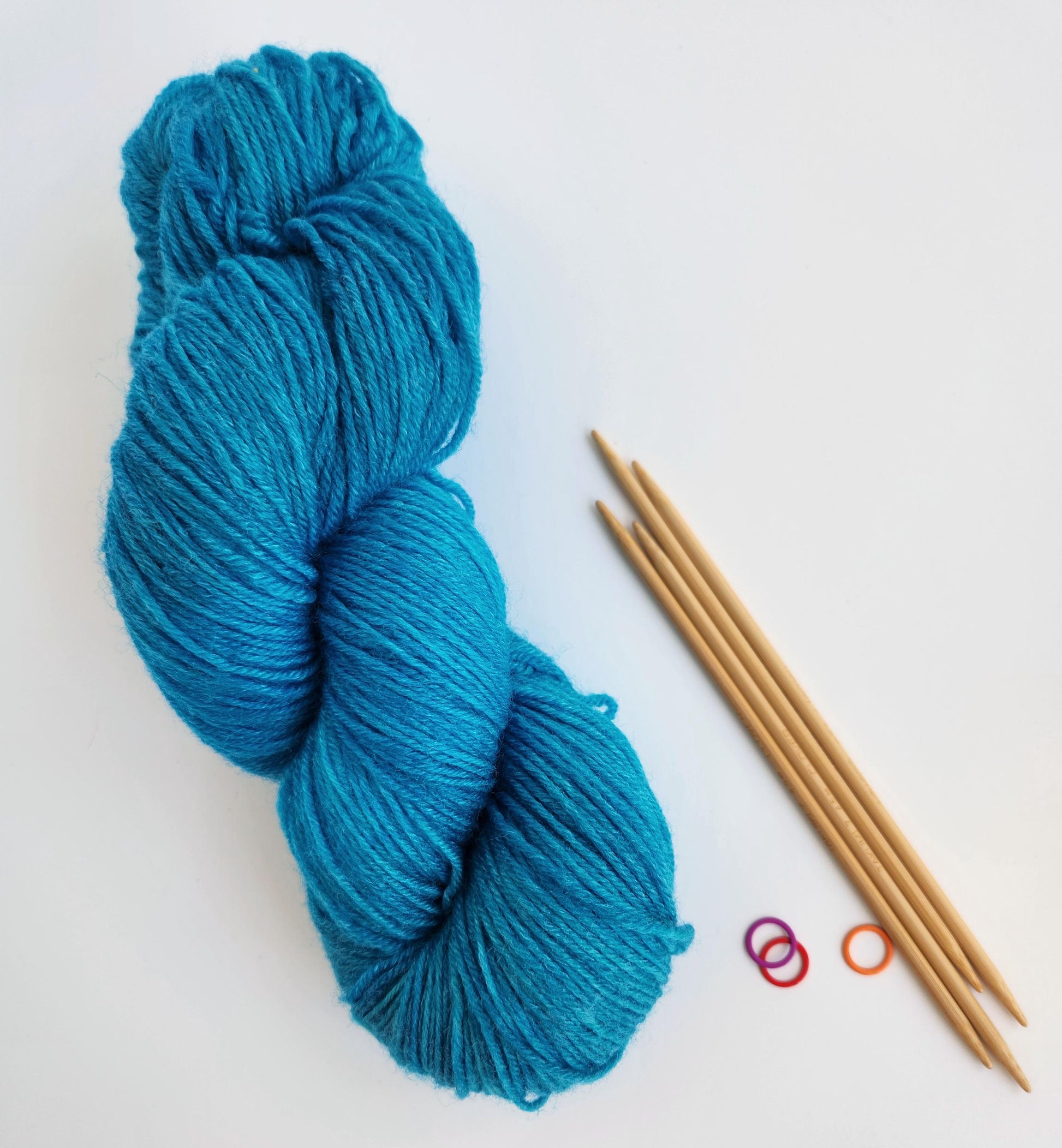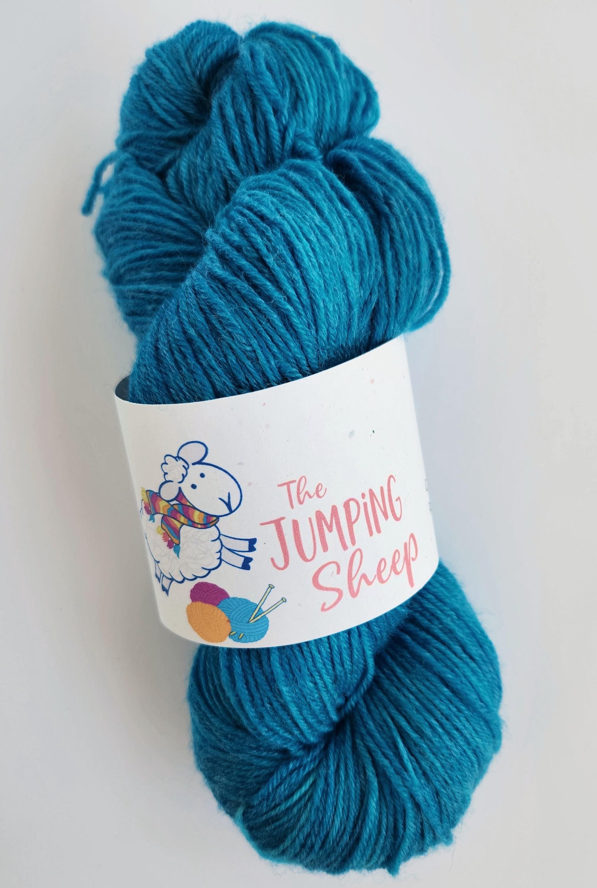 Yarn is dyed in Caribbean Blue. This colorway is a kettle dyed caribbean blue. There are slight tonal differences as you find in a kettle dyed yarn.